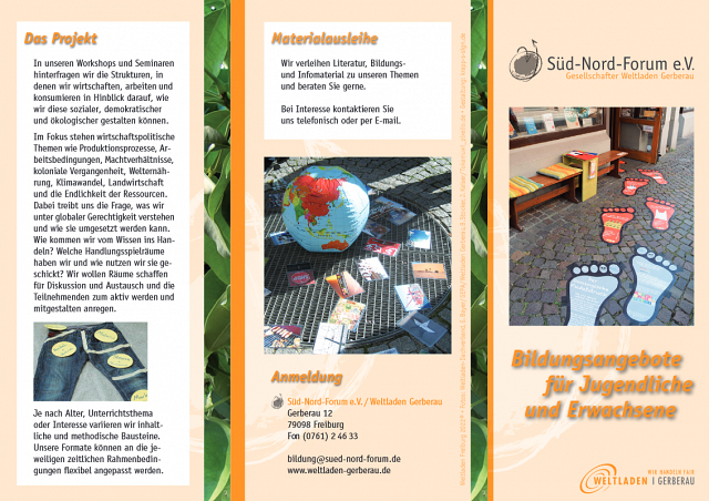 In unseren Seminaren und Workshops stehen wirtschaftspolitische Themen wie globaler Handel, ökonomische Machtverhältnisse, Arbeitsbedingungen, koloniale Vergangenheit, Welternährung, Klima und Landwirtschaft im Fokus sowie die Frage, wie Handel, Produktion und Konsum gerecht und verträglich (…)