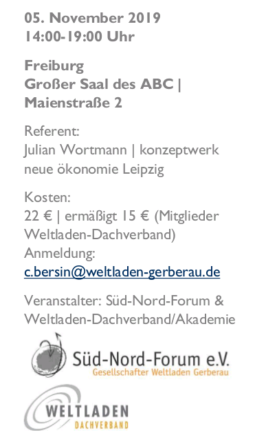 In diesem Workshop wollen wir Ideen und Menschen aus der Fair-Handels-Bewegung mit dem Postwachstumsgedanken und anderen alternativen Wirtschaftskonzepten zusammenbringen.