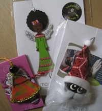 Mama Afrika Spiritwork importiert Kunsthandwerk aus Südafrika, das ebenso ungewöhnlich wie innovativ ist. Die Schallplattenengel werden aus alten Langspielplatten ausgesägt und sind alles handbemalte Unikate, die Perlenengel sind aus dem typisch südafrikanischen Shweshwestoff gemacht.