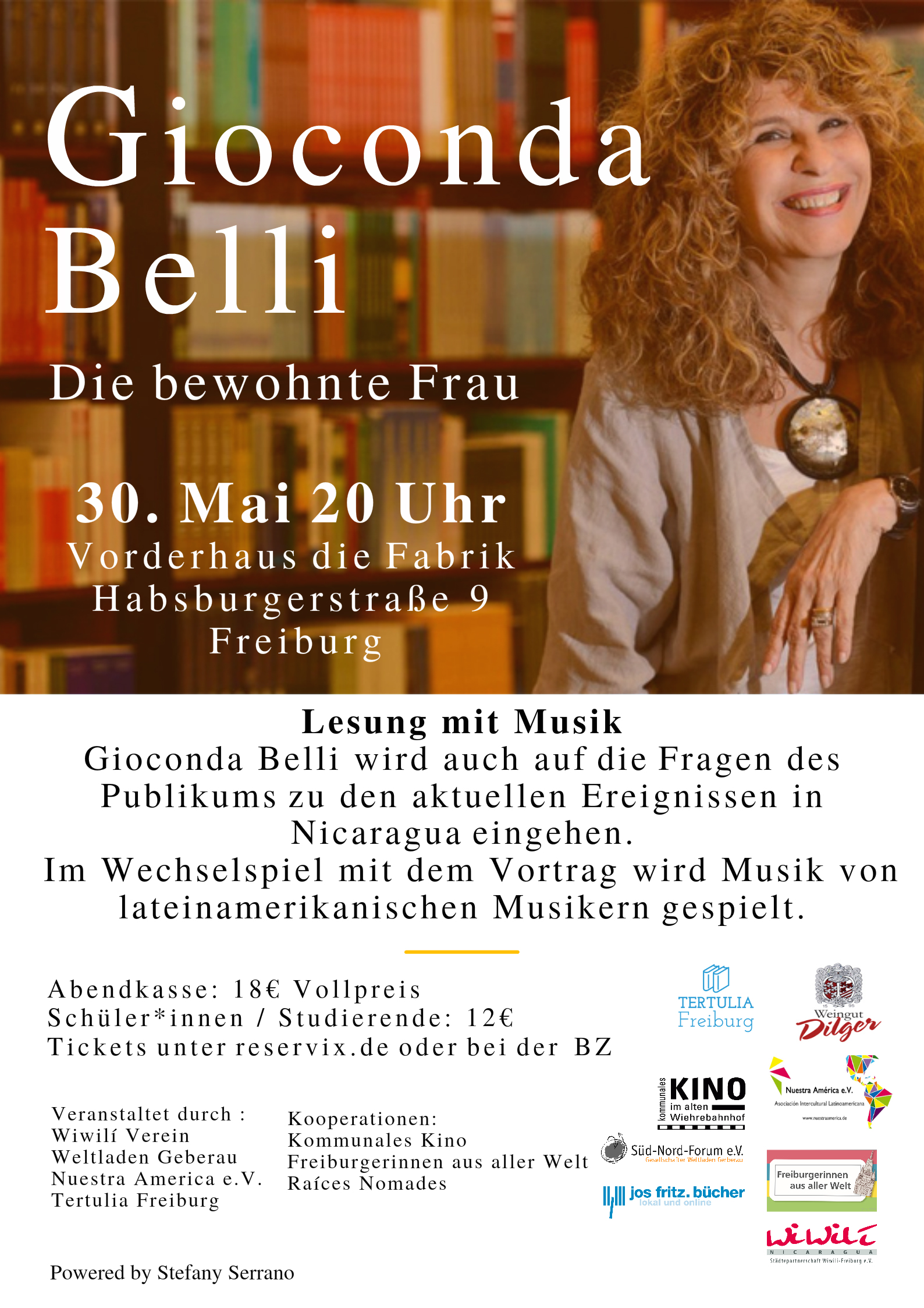 Am 30. Mai 2018 kommt die nicaraguanische Schriftstellerin Gioconda Belli nach Freiburg.