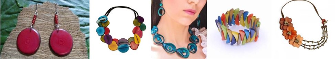 Dabei ist sie ein außergewöhnlicher natürlicher Werkstoff: einerseits ungewöhlich hart wie Stein (oder eben Elfenbein), überrascht andererseits das leichte Gewicht und seine anschmiegsame warme Struktur, die die Taguanuss angenehm auf der Haut tragen lässt. Es ist ein Material, welches den kolumbianischen Kunsthandwerkern, von denen wir unseren Schmuck beziehen, viel Gestaltungsfreiheit ermöglicht. Nach mehrmonatigem Trocknen werden aus den Nüssen in vielen Arbeitsschritten die Schmuckelemente hergestellt: Die Taguanüsse werden geschält, in Form gesägt, mehrmals geschliffen und poliert, gefärbt und schließlich zu phantasievollen Ketten, Armbändern und Ohrringen arrangiert. Am Ende entsteht ein einzigartiges Schmuckstück, das Freude und Natürlichkeit ausstrahlt. Beim Färben kommen unbedenkliche Textilfarben aus der Schweiz zum Einsatz, welche die einzigartige Maserung der Taguanuss zur Geltung bringen.